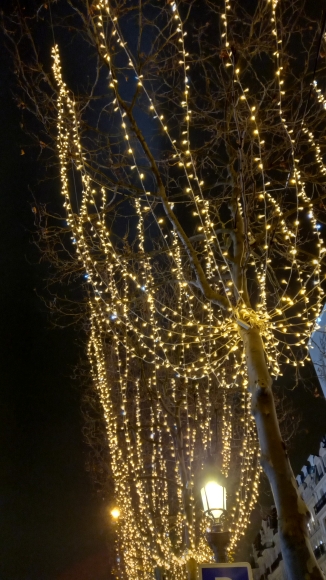 Cette photo a été réalisée à partir d’une photo prise à Paris (illuminations des Champs-Élysées 2023), et d’une image de cœurs multicolores.