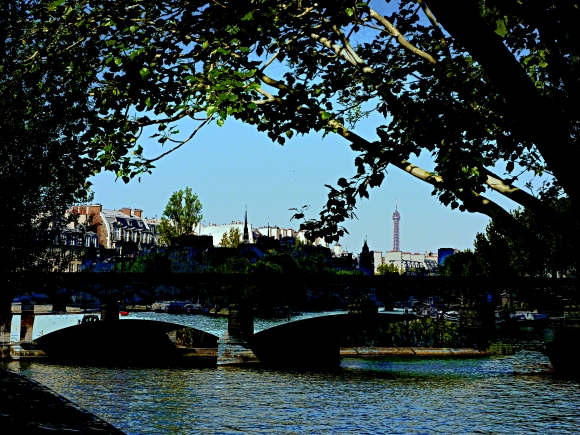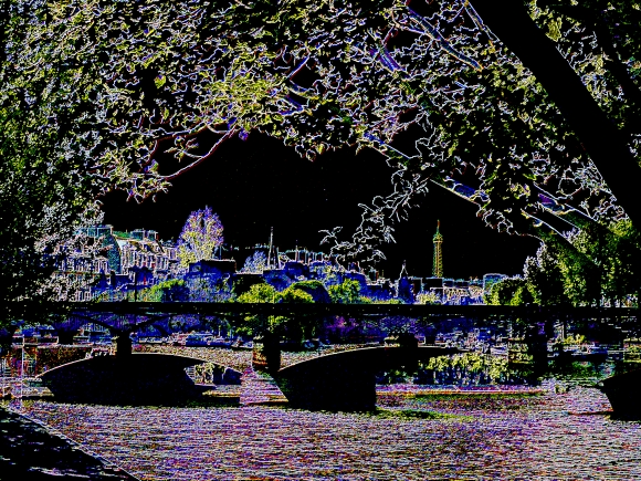 Notre-Dame vue du Pont des Arts (Photo d’origine 1), la Tour Eiffel vue du Pont du Carrousel (Photo d’origine 2) : « La nef et la tour ».