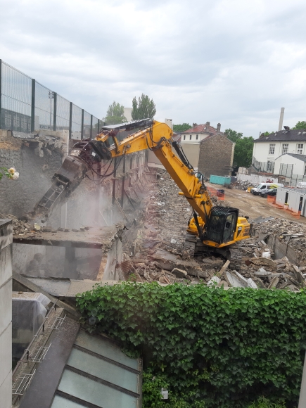 Cette photo a été créée à partir de deux photos d'un chantier de démolition à Paris, réalisées avec un smartphone Samsung A 7. L'engin du chantier de démolition évoquait un tyranosaure. L'étape précédente de ce chantier a inspiré la photo "Eve of destruction" présentée dans l'article : https://www.lesphotosdarchibald.fr/zenphoto/news/Eve-of-destruction-1660334561/