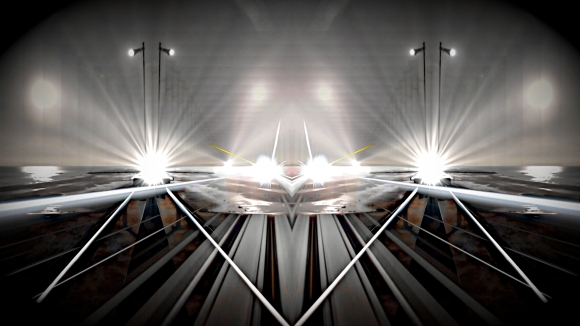Cette photo finale 2 est intitulée "Passage en vitesse lumière - II". Mais d'autres interprétations sont possibles : Plusieurs personnes qui ont regardé cette photo à mon exposition "Passage en vitesse lumière", au Salon Art Shopping du Carrousel du Louvre, du 17 au 19 octobre 2025, y ont vu un avion qui décolle (Lien vers la vidéo de cette exposition, qui ne présente pas cette photo créée et ajoutée au dernier moment : https://youtu.be/0KpQEXQOk2o ).