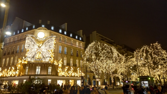 Cette photo a été réalisée à partir de deux photos prises à Paris, avenue Montaigne, le 26 décembre 2023, avec un smartphone Samsung SM-A125F, sans flash (Focale 2,0, vitesse 1/50 s, sensibilité ISO 160, pour la photo d'origine).